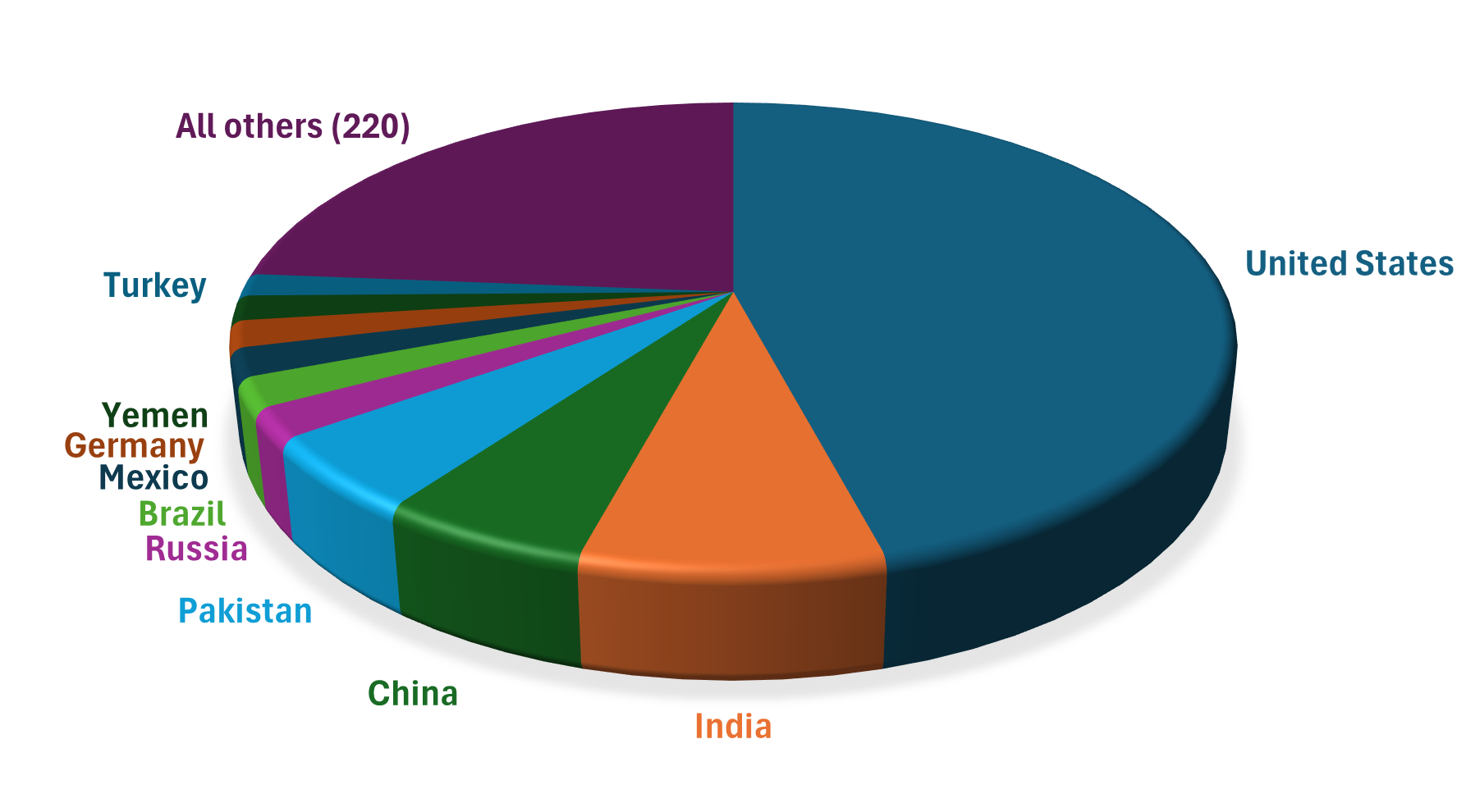 As Figure 1 shows, the United States accounts for about 46 percent of the world’s civilian firearms.